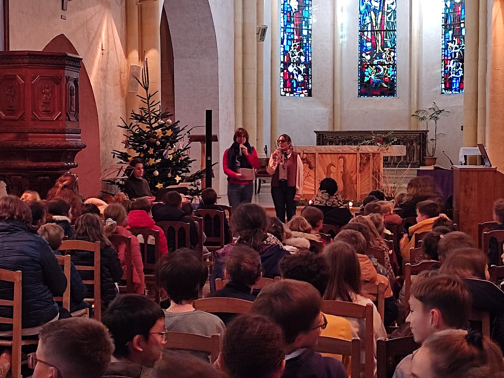 Mardi 16 décembre, les enfants de l’école primaire ont pu profiter de la célébration de Noël en présence du Père Joël. Les enfants des classes élémentaires ont préparé des saynètes alliant textes et mimes pour rendre ce temps vivant.
