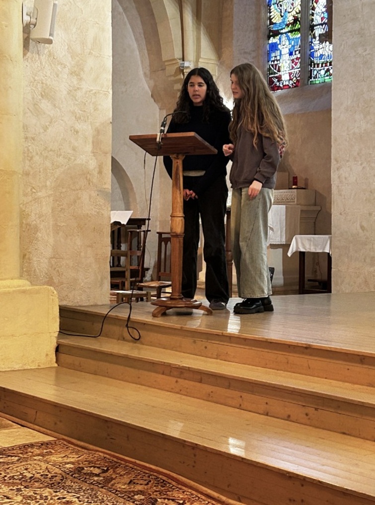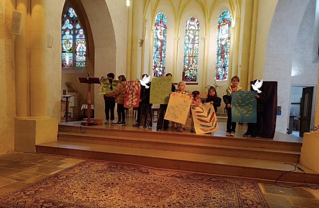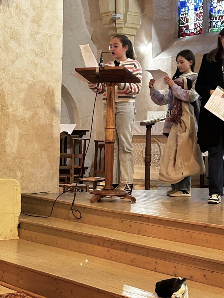 Ce moment, vécu dans une ambiance chaleureuse, a rassemblé élèves et adultes dans un esprit de partage. Nous avons eu la chance d’être accompagnés par deux collégiennes qui ont animé les chants avec beaucoup d’enthousiasme, apportant une belle énergie à cette célébration.