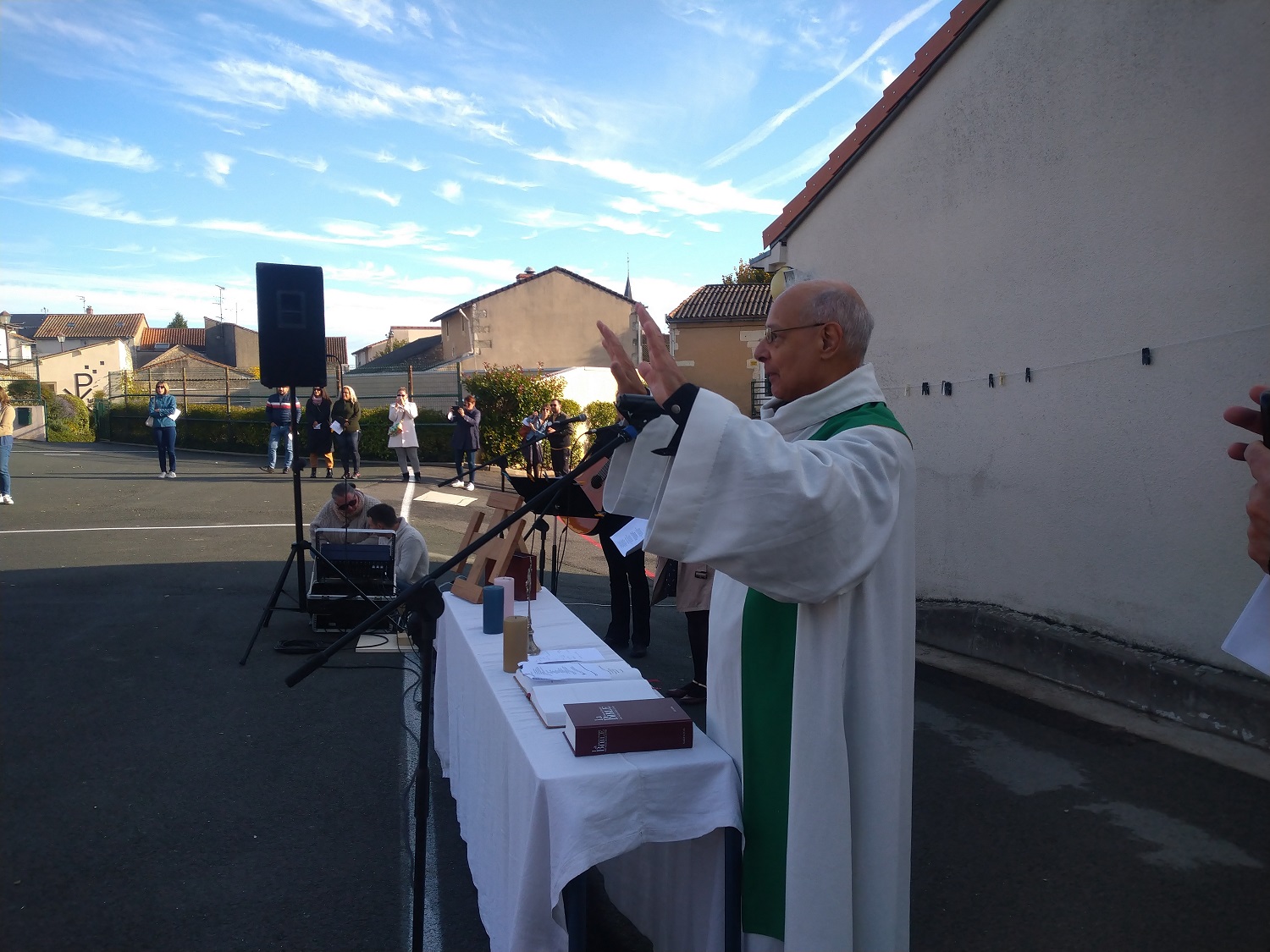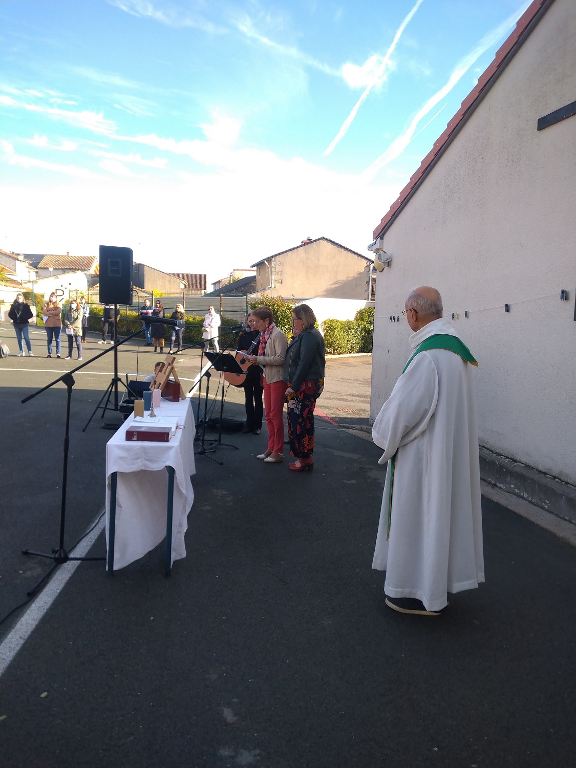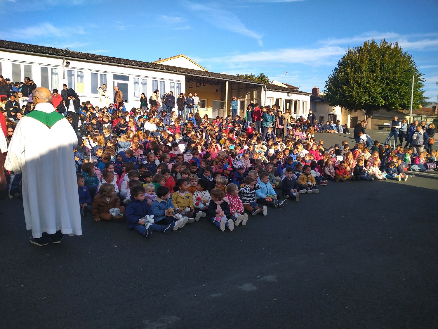 Avec le Père Joël, la grande famille du Sacré Cœur La Salle est réunie pour la célébration de rentrée. Des classes maternelles jusqu’aux collégiens de troisième, chacun a pu profiter de ce temps de rassemblement pour se souhaiter une bonne année scolaire faite de joies, des rencontres et de partages.