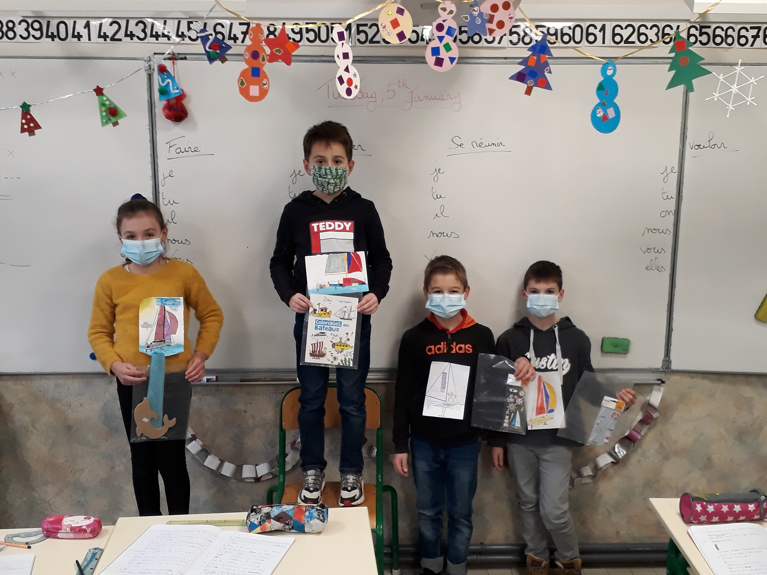Le concours de dessin organisé dans la classe des CM1, “je dessine mon voilier” s’est achevé sur un beau podium ! Tous les participants se sont investis à fond. Quelle belle compétition !