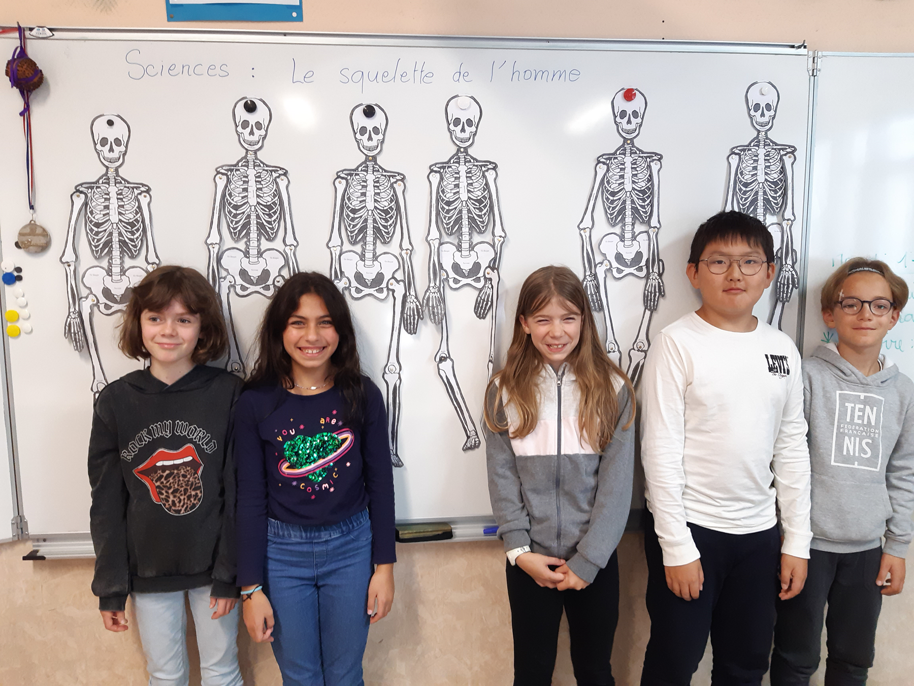 Les CM2 travaillent sur le squelette en sciences et en profitent pour faire le lien avec Halloween.