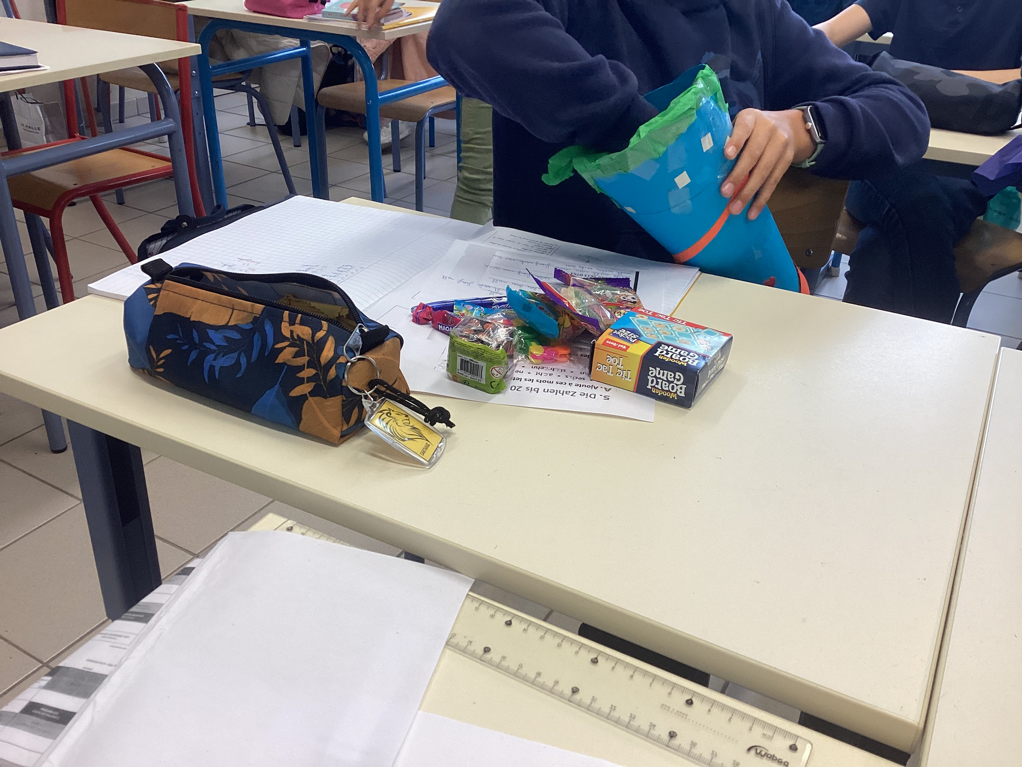 Une fois prêtes, ces Schultüten ont été offertes à un camarade de classe dans un esprit de partage et de bonne humeur.