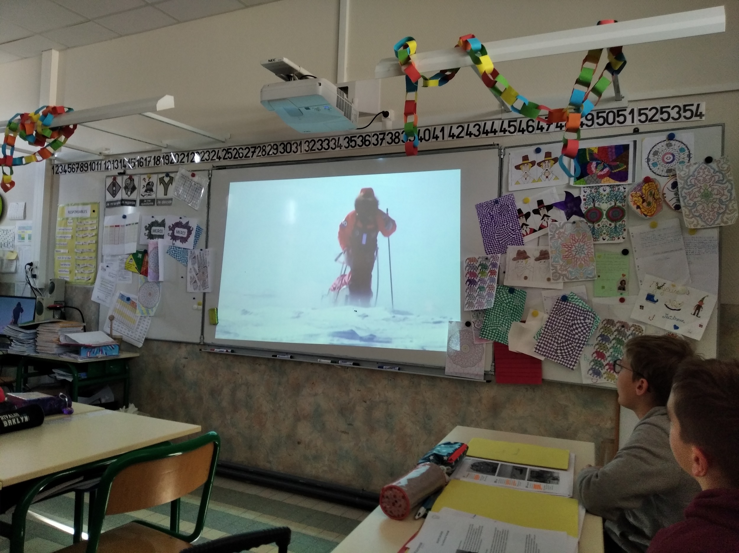 Les élèves de cycle 3 suivent depuis le mois de novembre une grande expédition menée par Laurence De La Ferrière (alpiniste) et Eric Loizeau (navigateur) vers le continent Antarctique. Nous avons pu communiquer par mail avec eux chaque semaine et nous avons pour finir assister à une web émission dans laquelle notre question vidéo a été sélectionnée parmi tant d’autres ! Ils nous ont fait découvrir ce continent, sa faune et sa flore, le milieu marin, et surtout que, même dans cet endroit retiré de toutes vies humaines, on trouve malheureusement des traces plastiques ! Maintenant nous allons préparer des exposés sur l’environnement.
