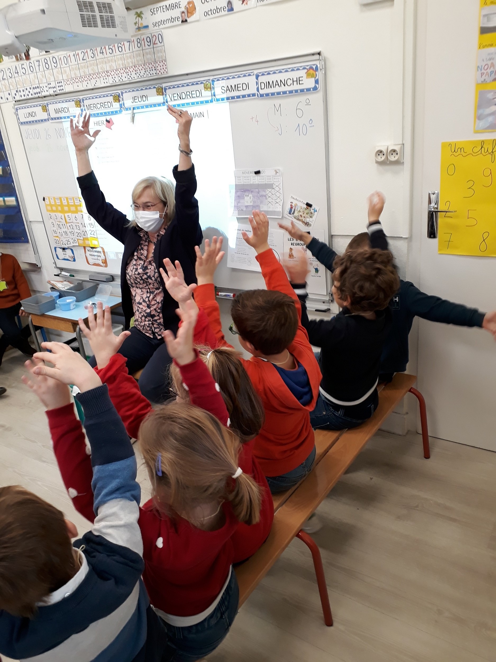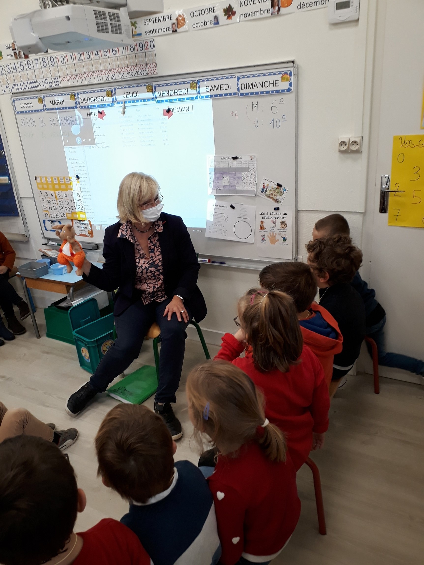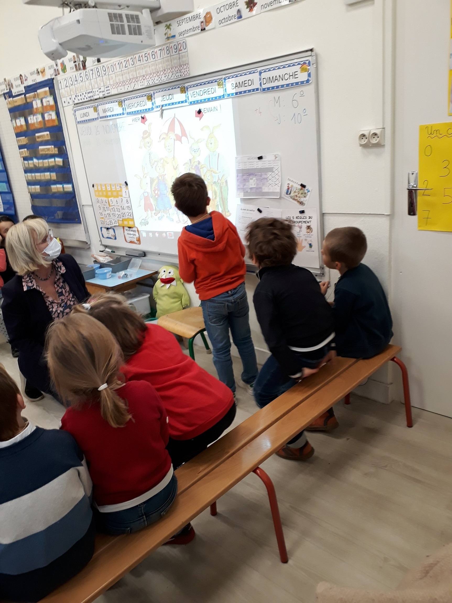 Tous les quinze jours, les GS de la classe de Mme LUCAS bénéficient d’un cours d’allemand dispensé par un professeur du collège. C’est l’occasion d’apprendre à se présenter, à se saluer dans une autre langue et de manière ludique par le biais de marionnettes et de comptines amusantes.