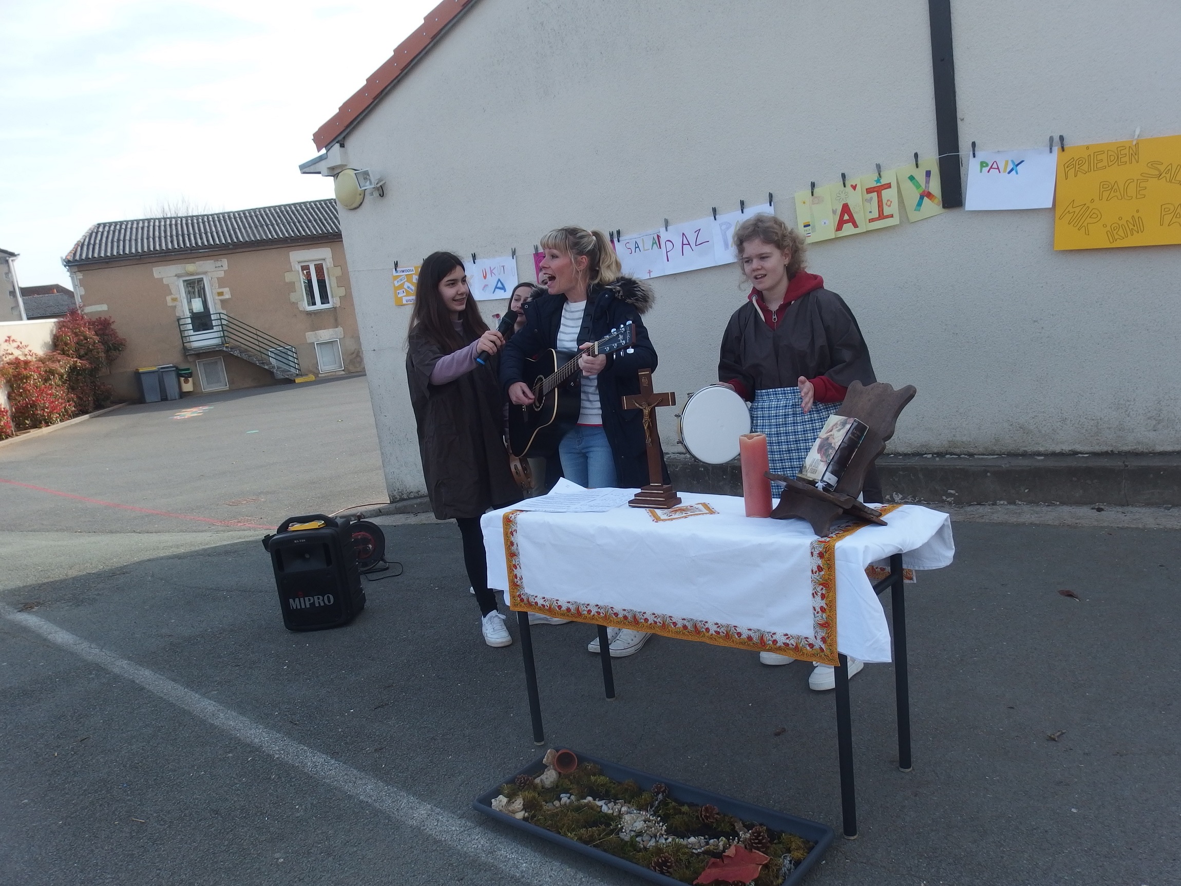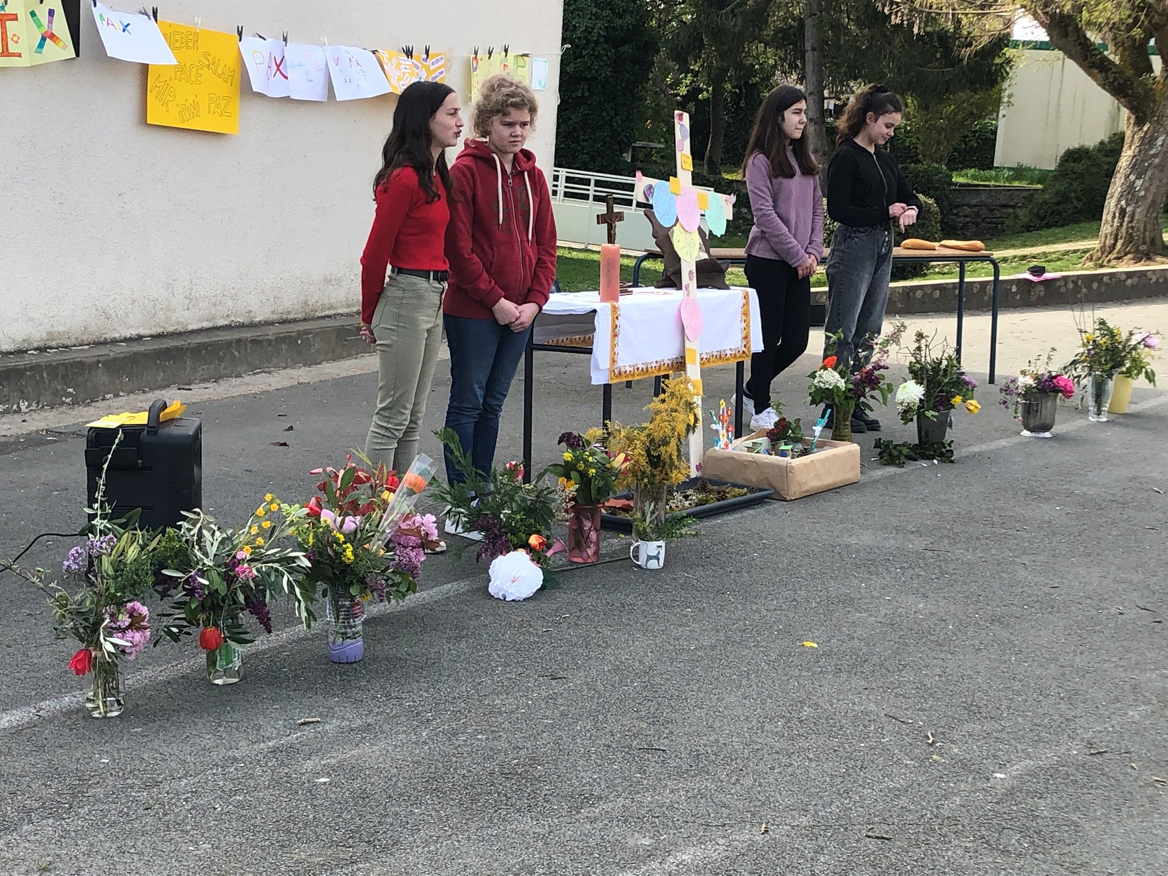 Extrait de la prière lue lors du temps de rassemblement de tous les enfants de l’école :