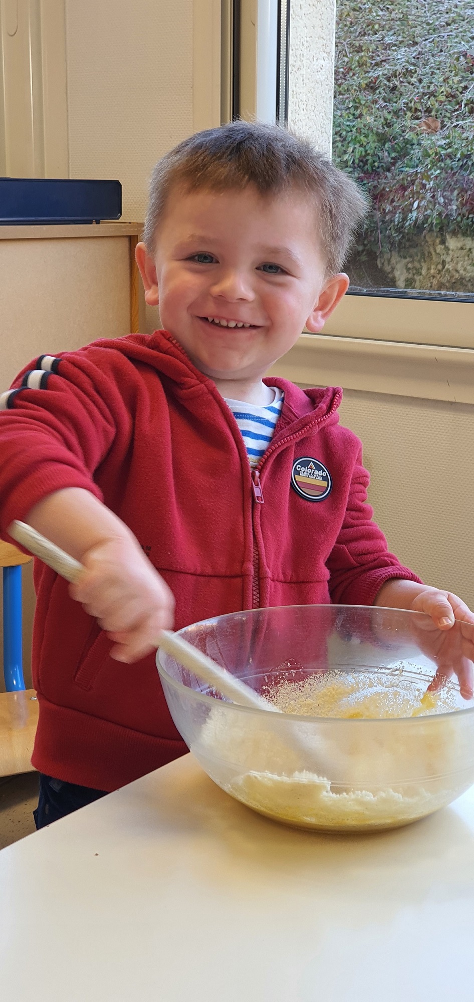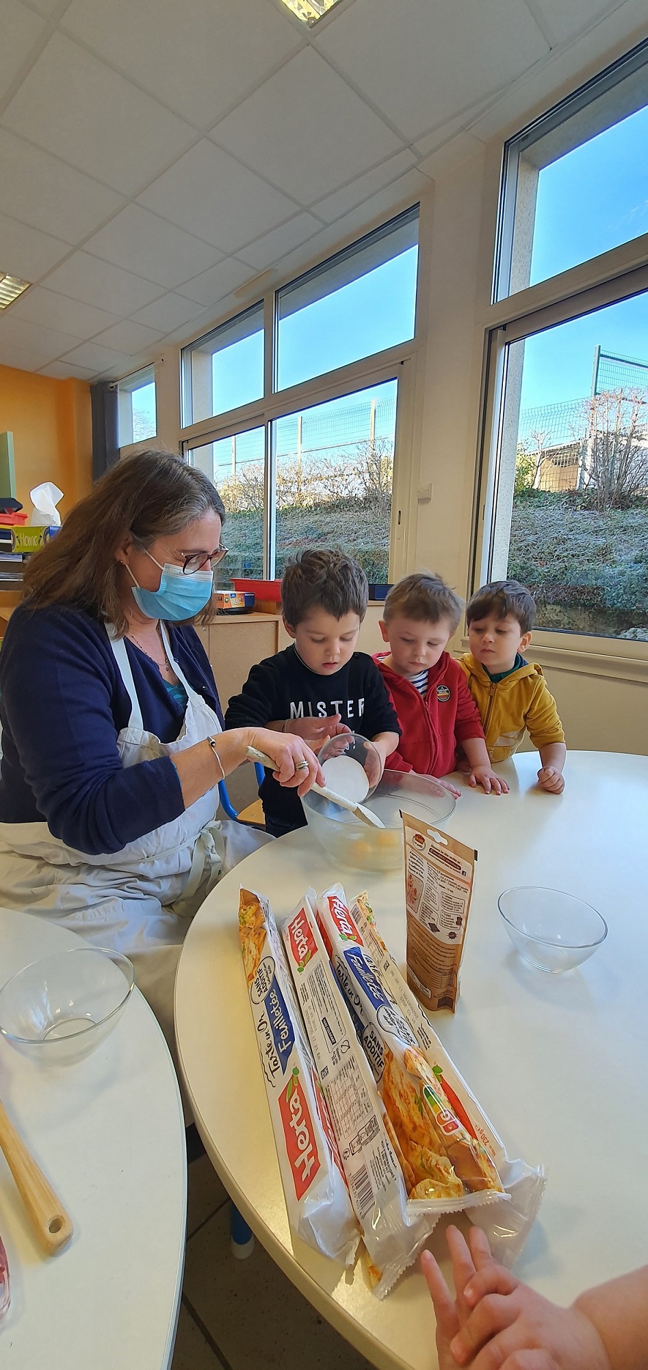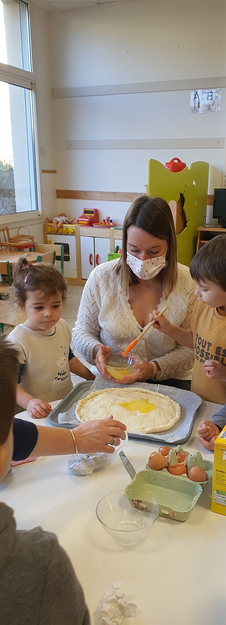 Les élèves de petite et de moyenne section ont étudié l’album de jeunesse « Roule galette ». Pour terminer ce projet, ils ont cuisiné des galettes des rois. Après avoir mélangé tous les ingrédients, les petits chefs n’ont pas oublié de cacher la fève. Le meilleur moment de la recette !