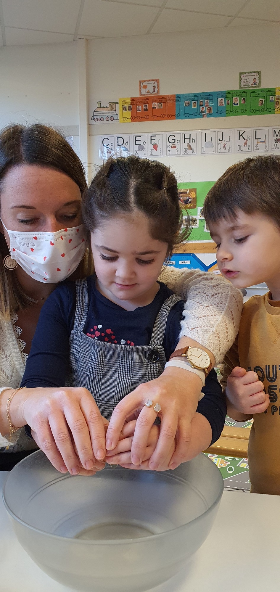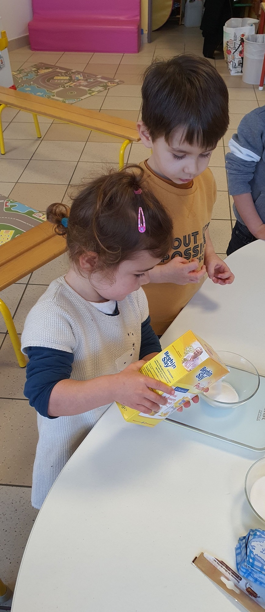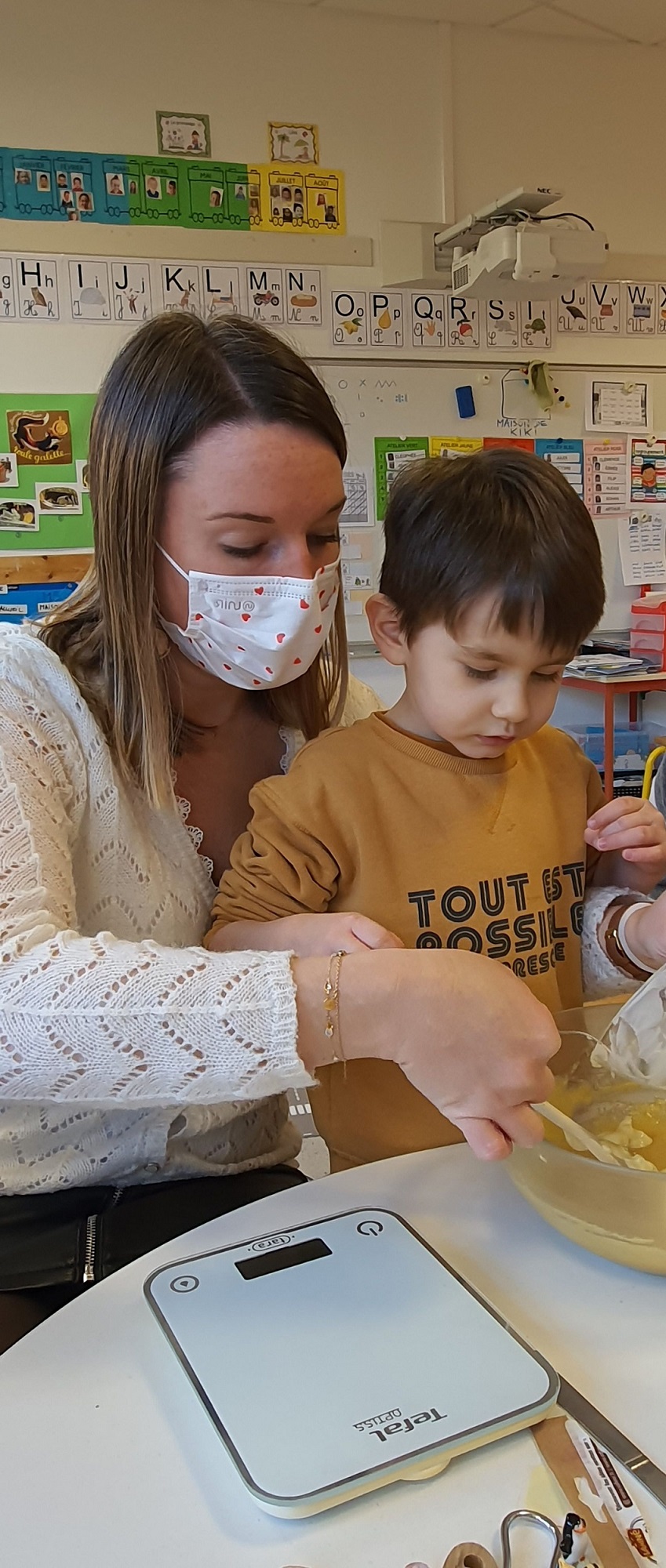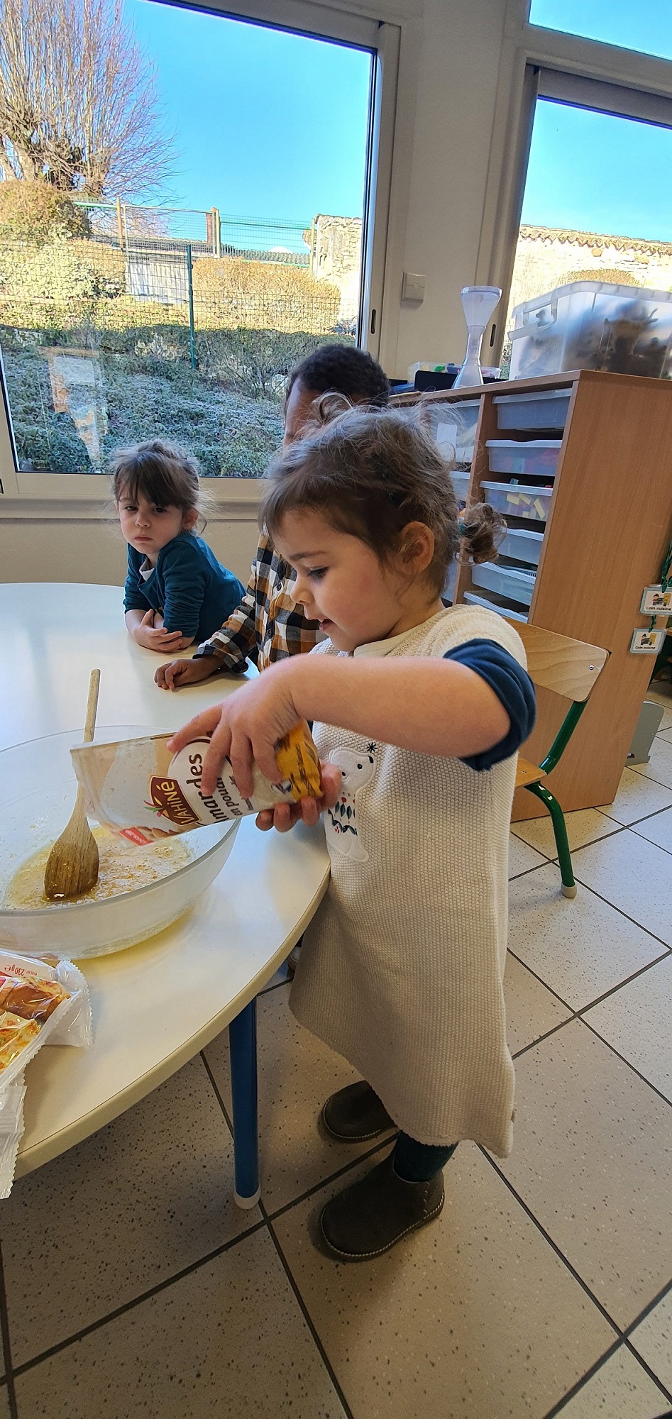 Les élèves de petite et de moyenne section ont étudié l’album de jeunesse « Roule galette ». Pour terminer ce projet, ils ont cuisiné des galettes des rois. Après avoir mélangé tous les ingrédients, les petits chefs n’ont pas oublié de cacher la fève. Le meilleur moment de la recette !