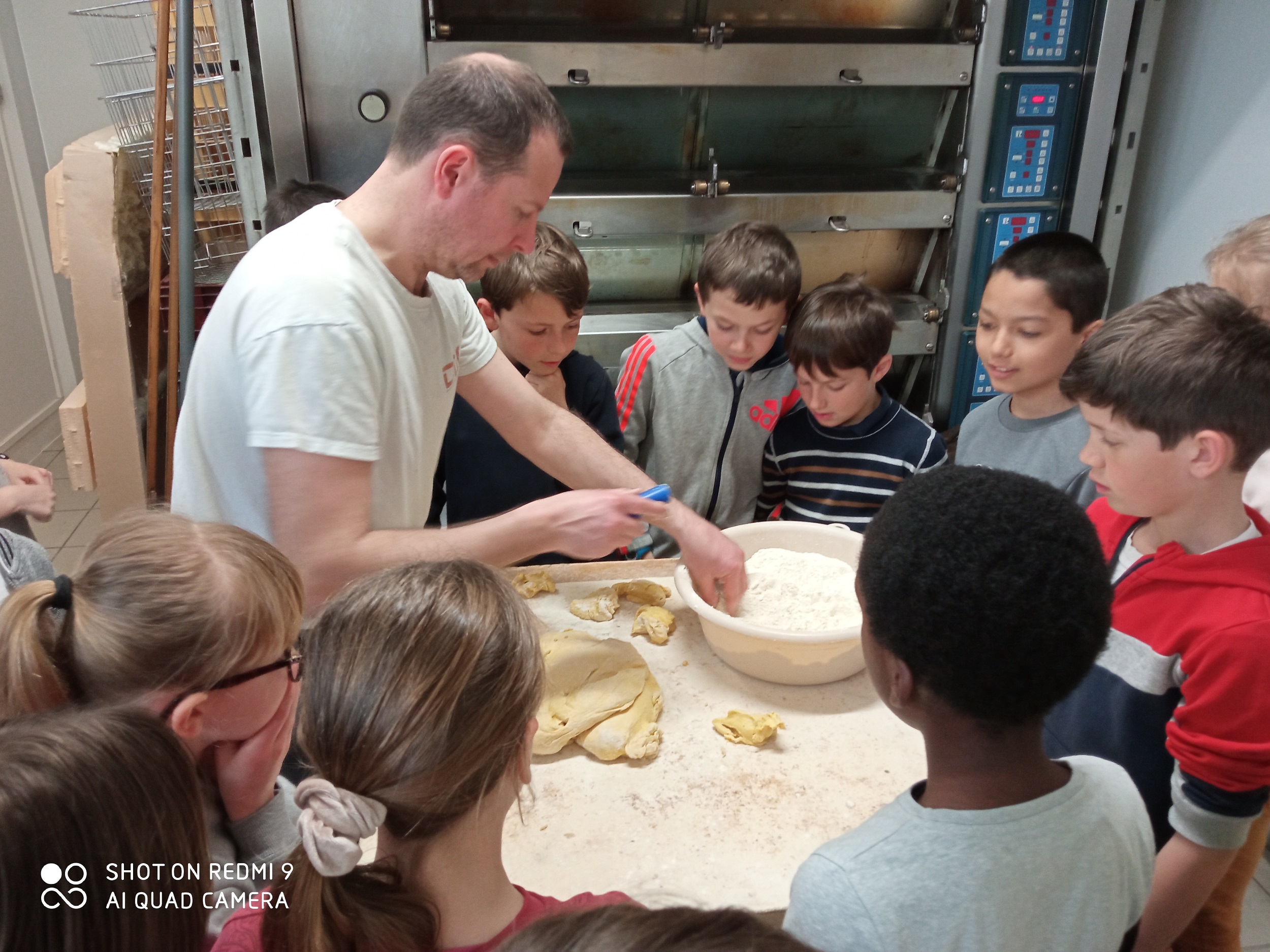Le 21 mars dernier, les élèves de la classe de CM1 se sont rendus à la boulangerie Notreami à Jaunay-Marigny pour une visite et une rencontre avec les professionnels qui exercent les métiers de la boulangerie-pâtisserie. Nous remercions Madame et Monsieur Notreami et leur équipe pour leur accueil, le temps accordé aux élèves et le partage de leur expérience.