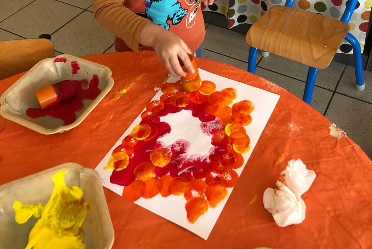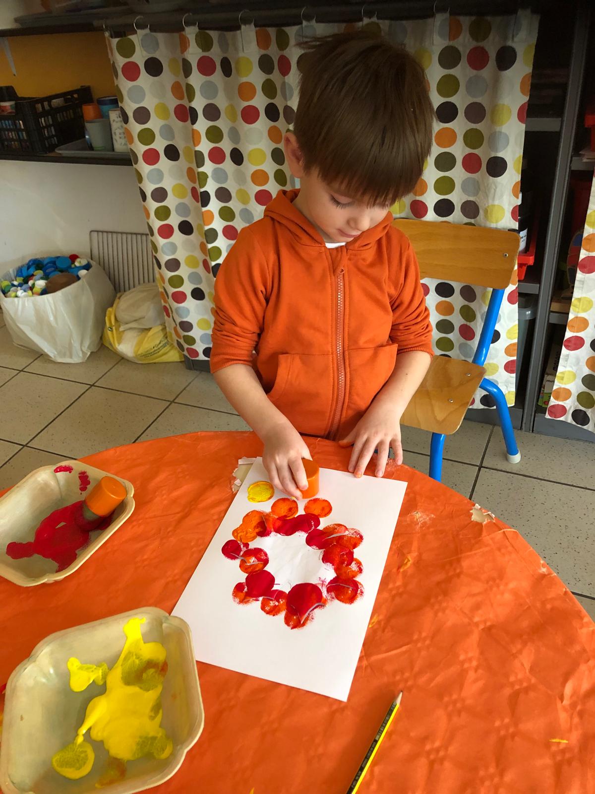 Et l’après-midi, les élèves ont réalisé des pochoirs de feuilles aux couleurs automnales.
