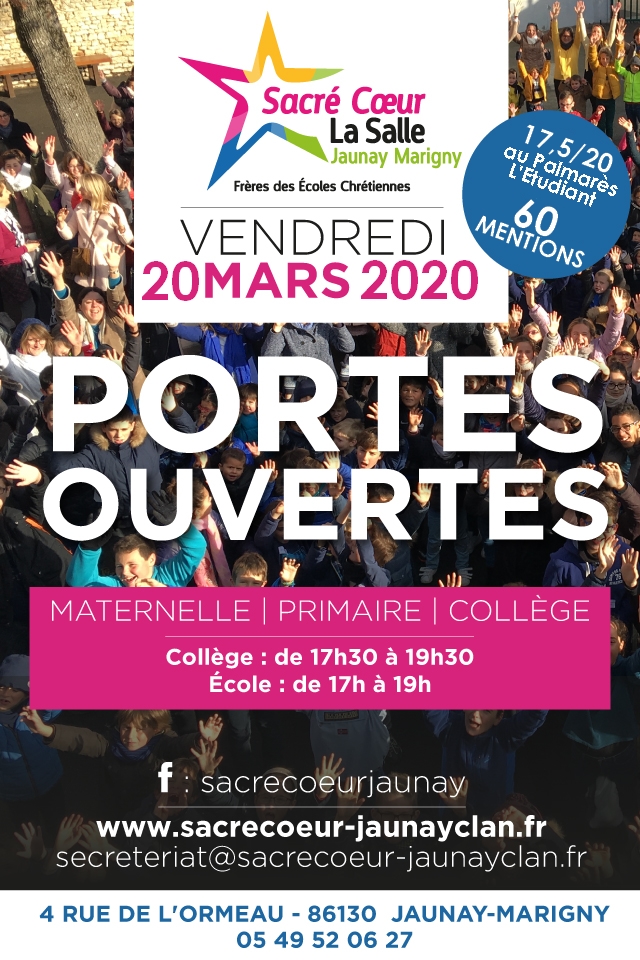 Une date à retenir : Les PORTES OUVERTES au Sacré Cœur La Salle de Ville de Jaunay-Marigny/// Pour venir visiter l’un des établissements les plus dynamiques du département de la Vienne