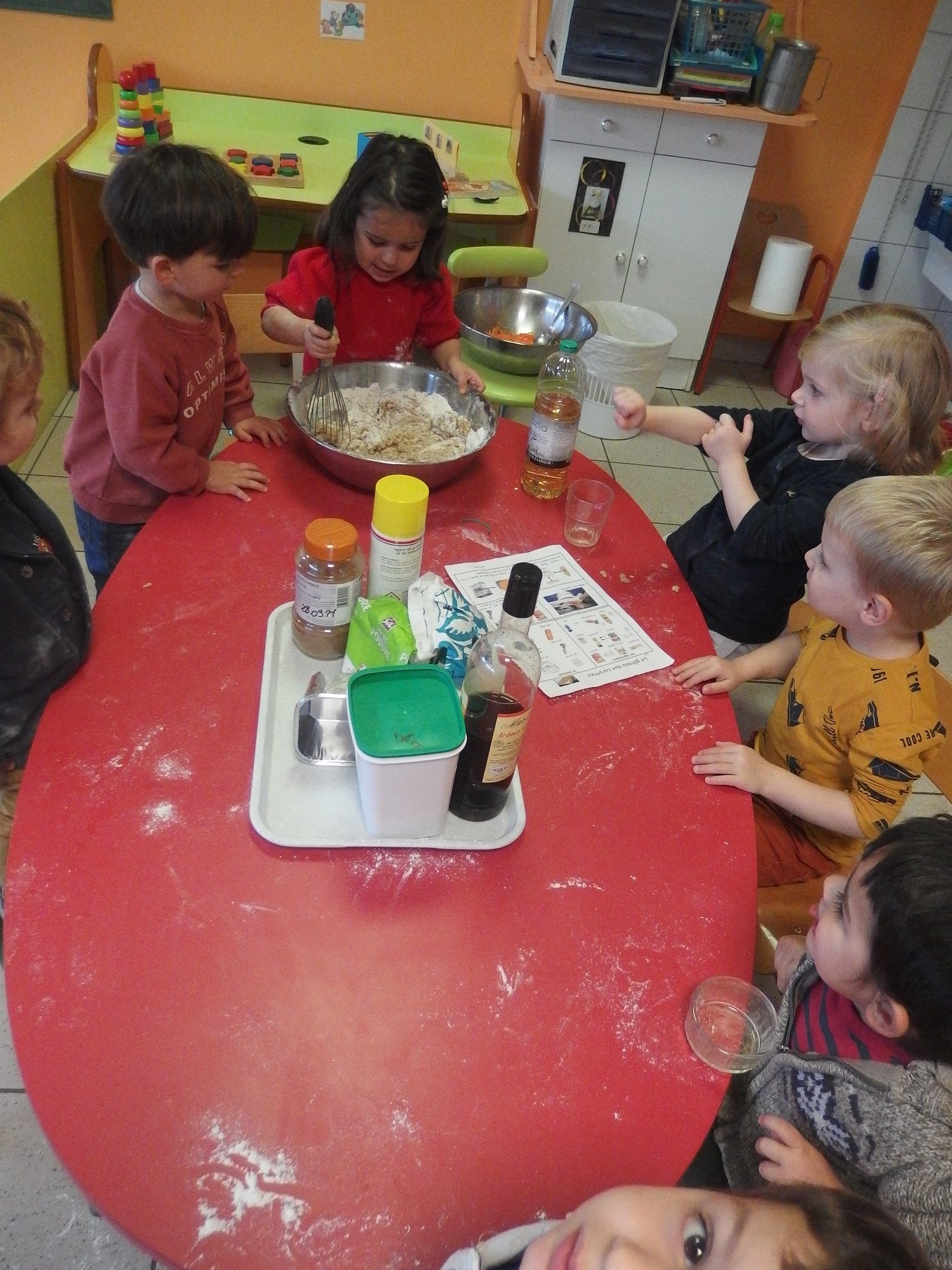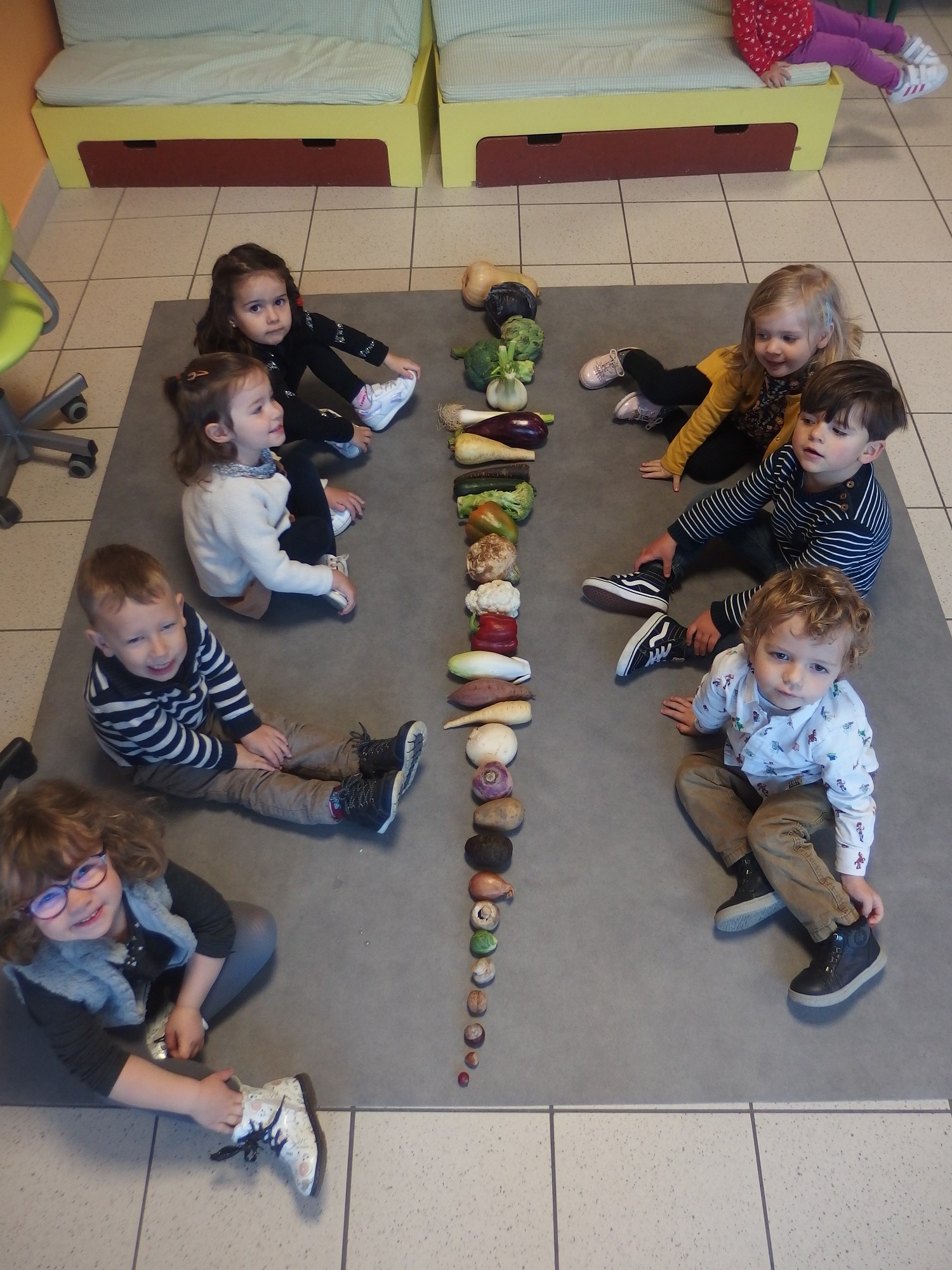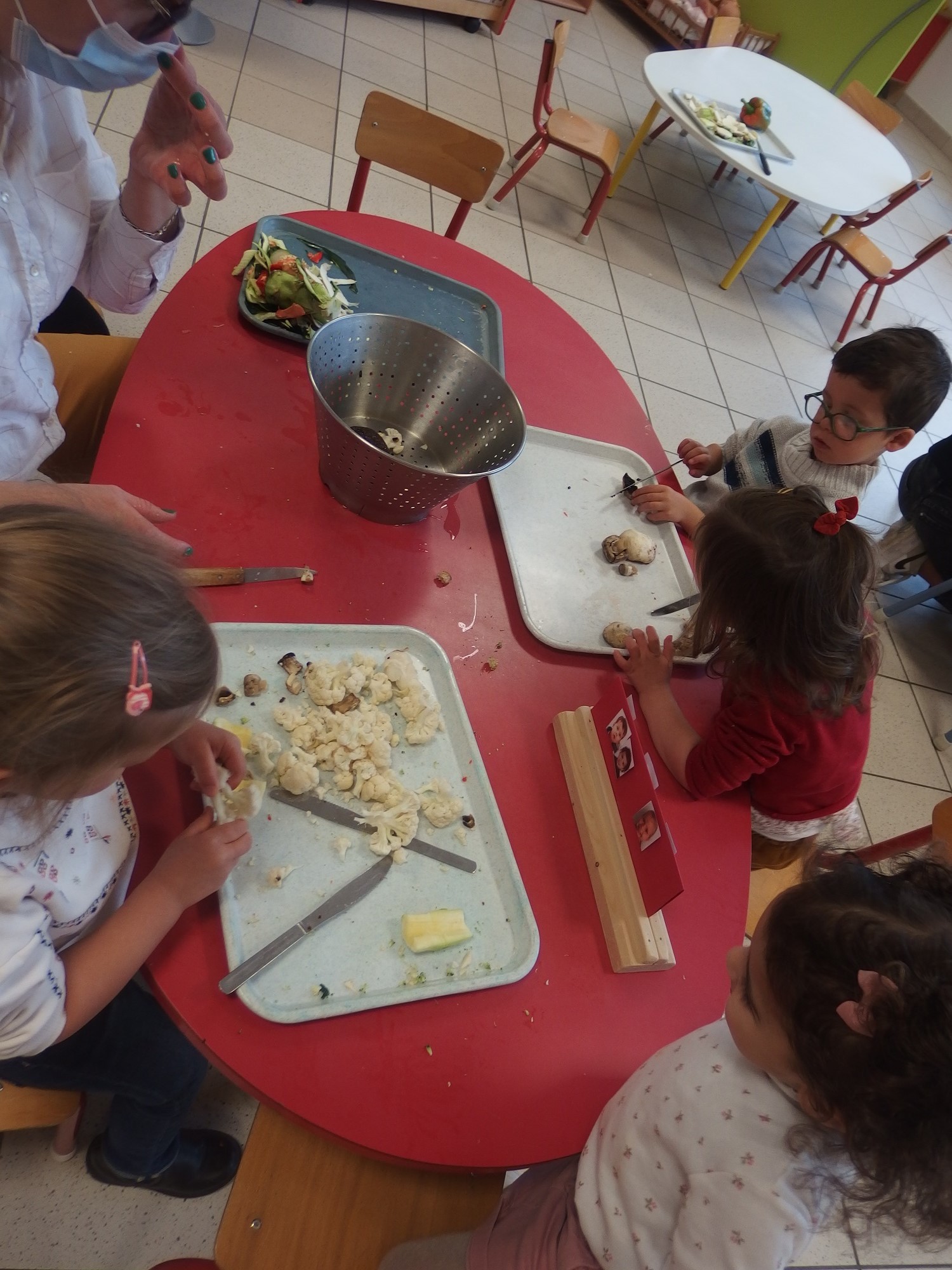 Chaque jour un légume d’une couleur différente apporté par les enfants. Dégustation, confection d’une délicieuse soupe et d’un gâteau aux carottes…L’occasion d’inciter les enfants à manger des légumes !