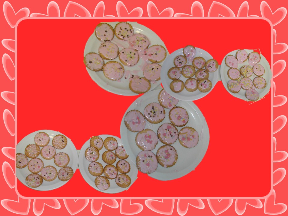 Cette semaine, nous avons fêté St Valentin. La séance a commencé avec la décoration de biscuits avec du glaçage, des vermicelles et des confettis sucrés.