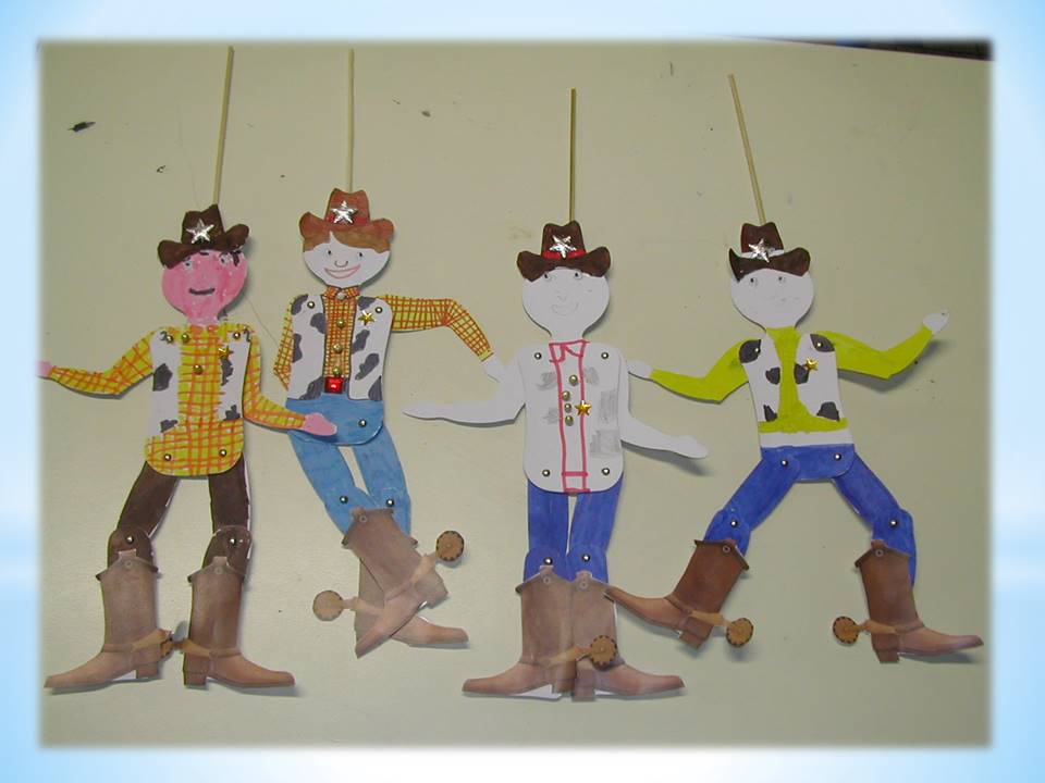 Notre activité créative était de créer une marionnette cow-boy, comme Woody, la poupée cow-boy dans le film.  Voici une photo :
